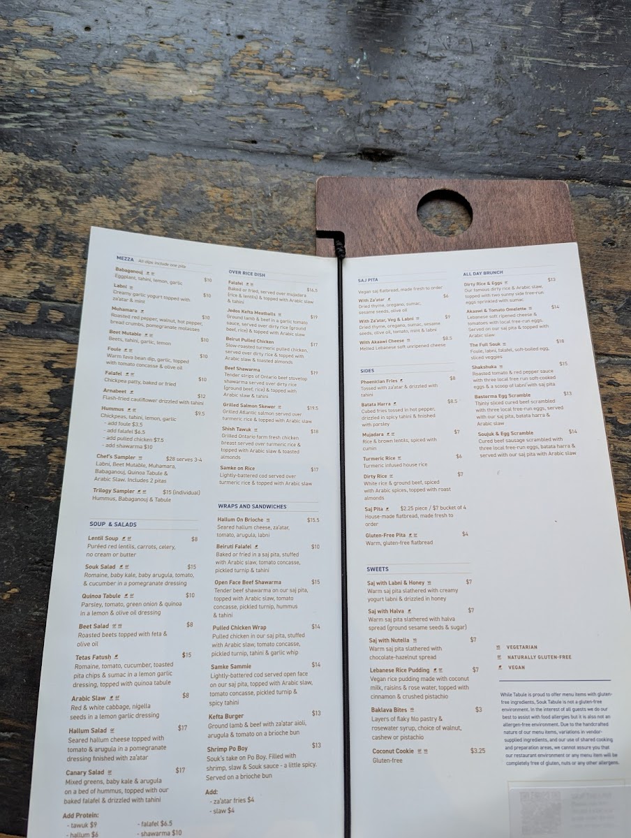 Welcome to Souk Tabule, a vibrant culinary gem nestled in the heart of Toronto at 494 Front St E. This delightful eatery celebrates Middle Eastern cuisine, serving up a menu that combines classic flavors with a modern twist. Signature dishes include the Basterma Scrambled Eggs, featuring tender cured beef, eggs, and fresh veggies all wrapped in warm saj pita, and the Soujuk and Scrambled Eggs, which delivers a savory twist with quality cured sausage.